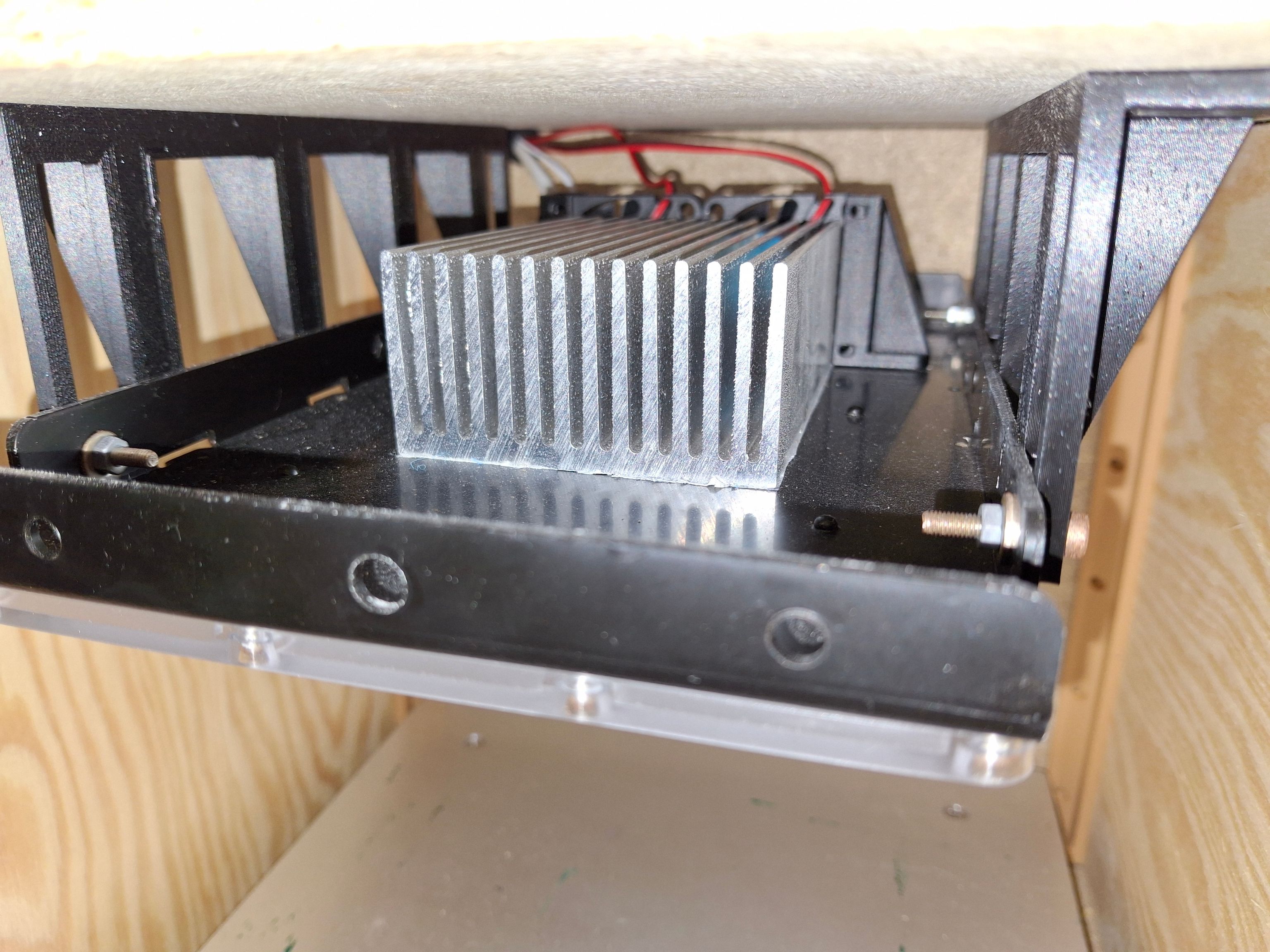 I fixed it by securing a large heatsink to the UV lamp and adding small fans to the back side. The fans were wired to the Ender PCB on the fan terminal. Unfortunately, that terminal is wired directly to 12V, so I can’t control it.