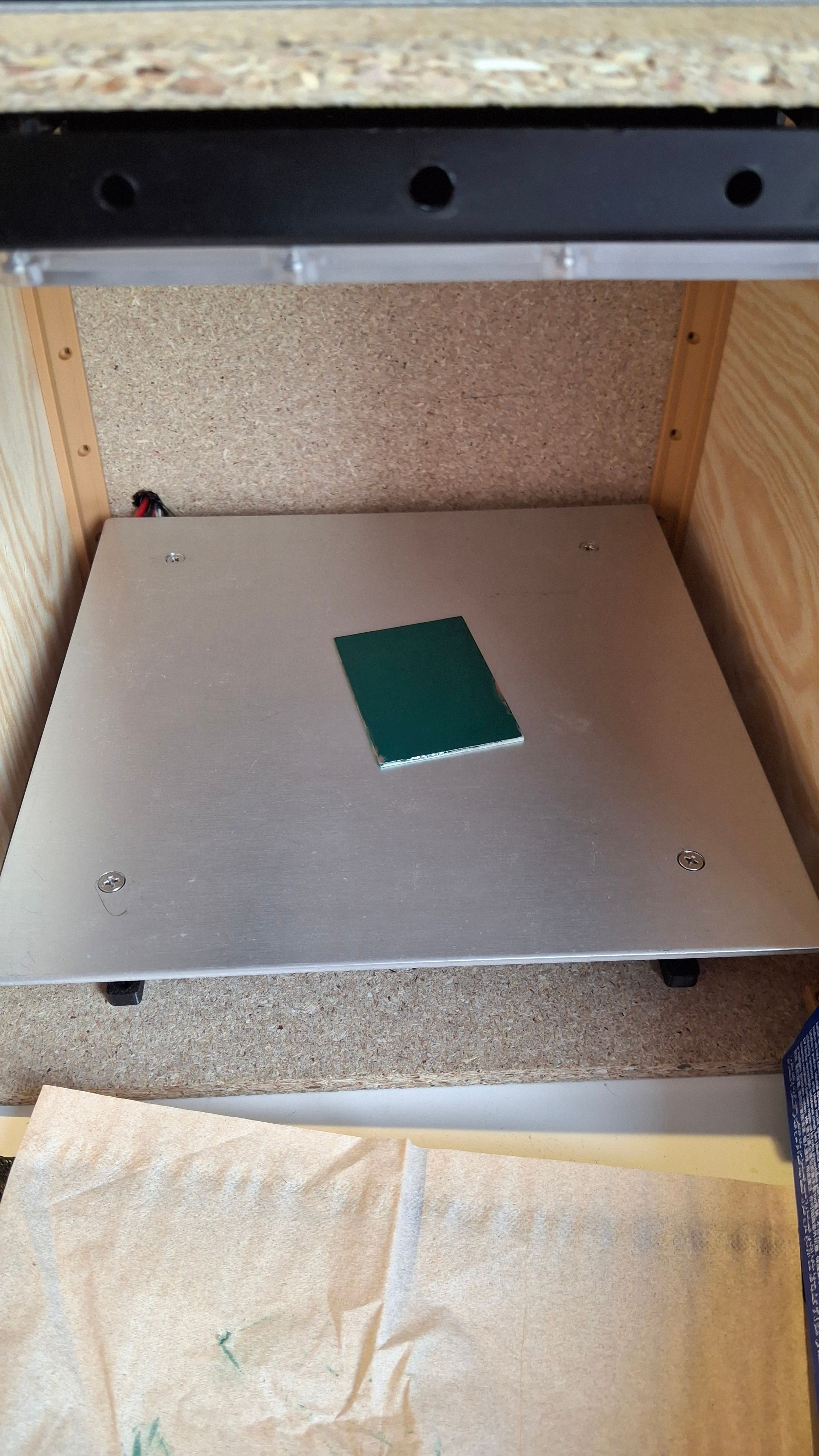 I got the idea to build this while doing the process. I was looking around and had a “heureka” moment when I saw my Ender 3 printer bed lying around. I realized I could use its bed instead of the hot plate.