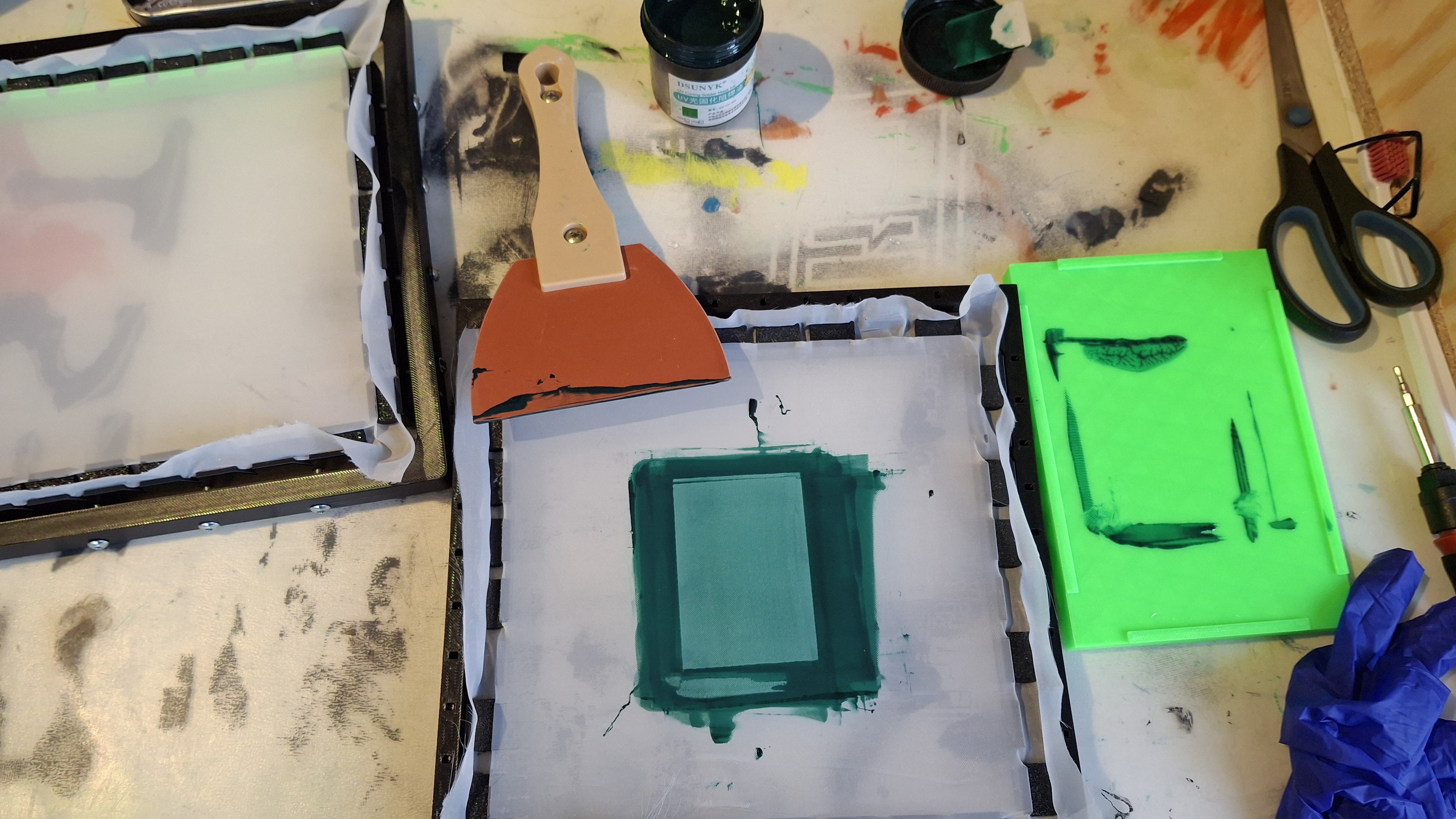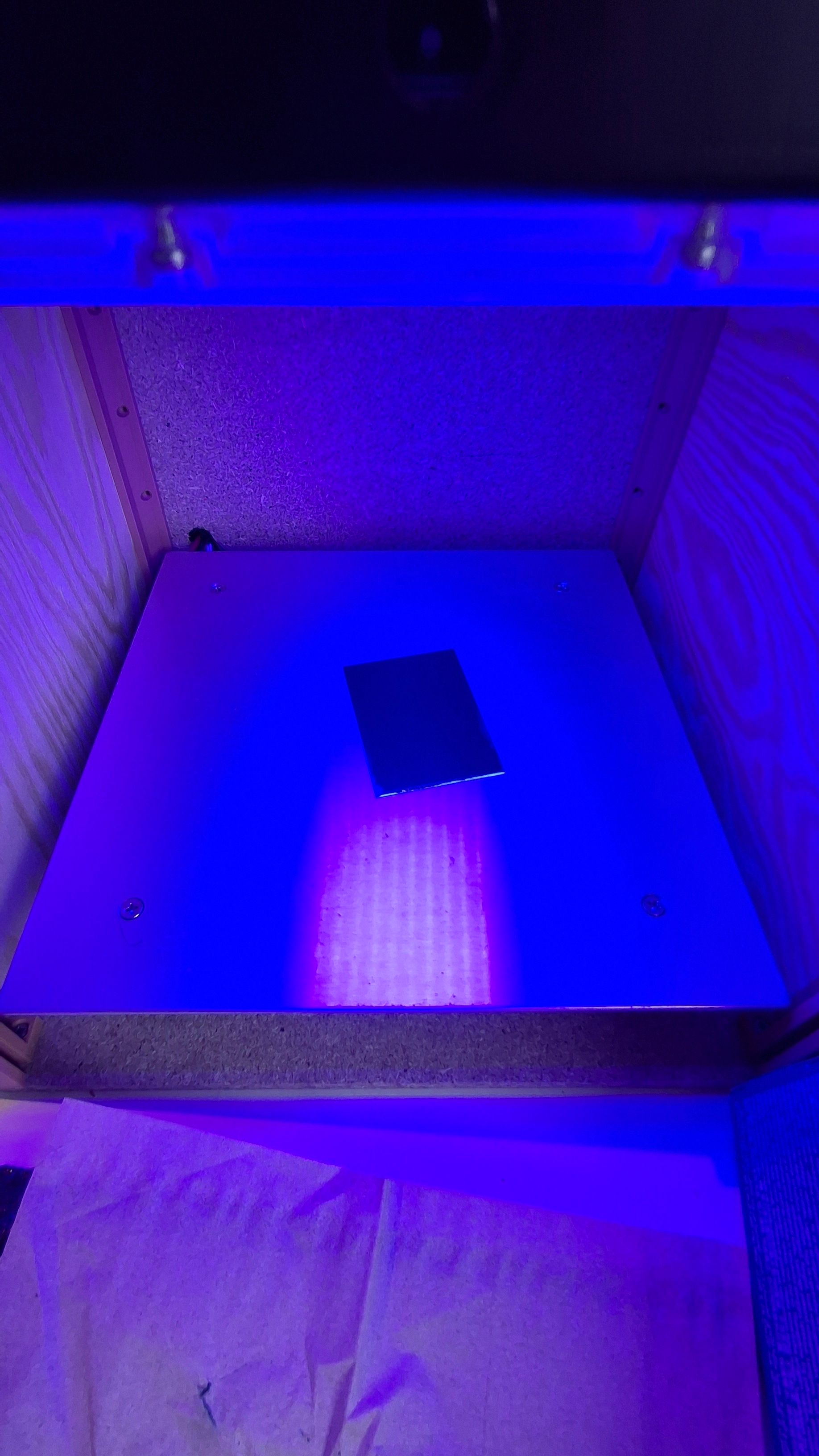 Before building this, I did the process on a hot plate (fairly big, but not as big as this), and after some time I moved it under the UV lamp, which had some very sketchy 3D-modeled legs and a fan holder above it.